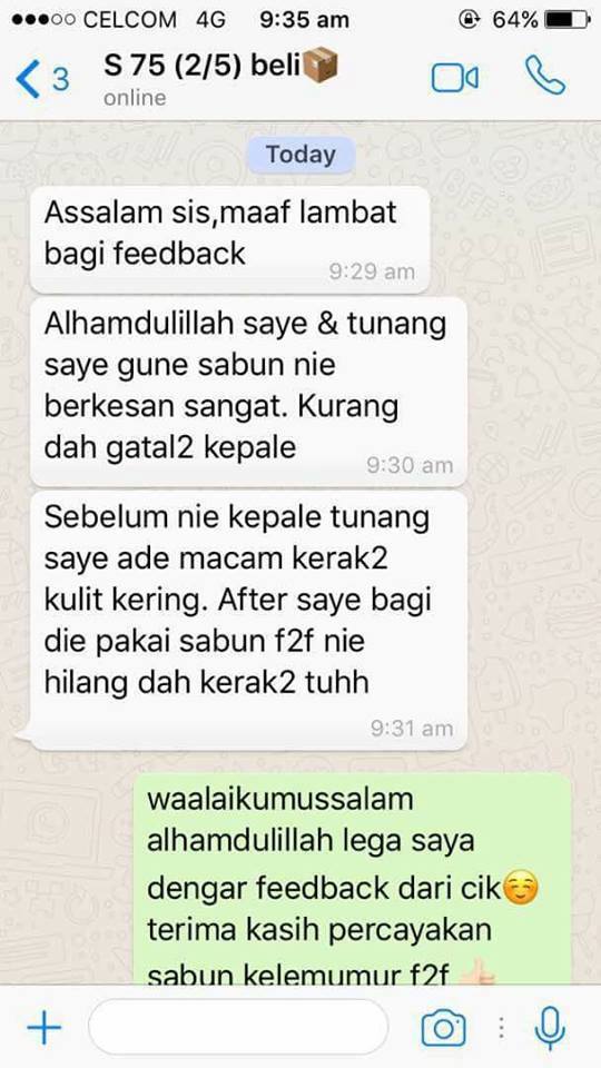 Beberapa testimoni pengguna F2F Sabun Kelumumur.